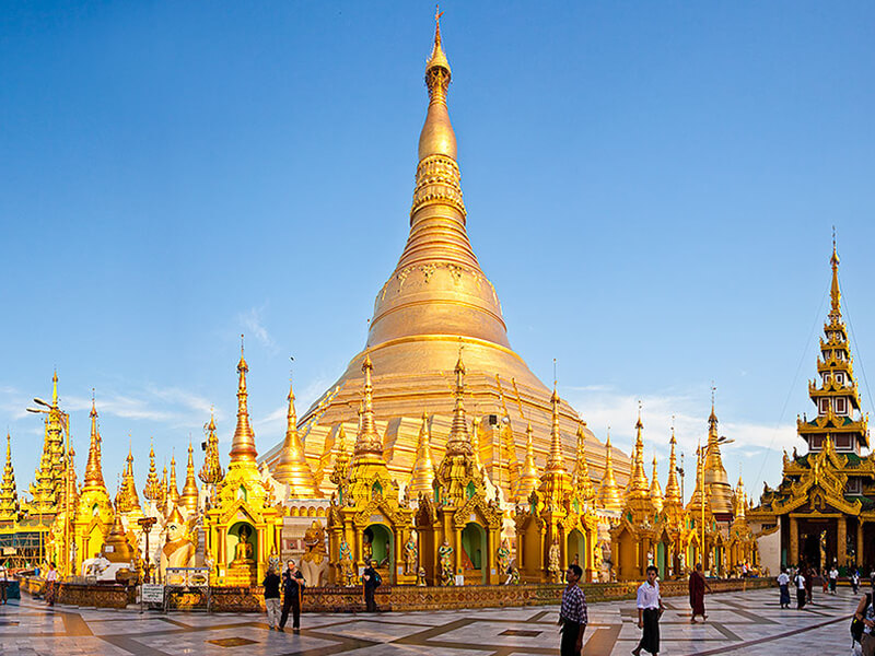 Chiều: Quý khách tham quan Chùa Shwedagon – một trong những chốn linh thiêng bậc nhất của đất nước Myanmar. Dù ban ngày hay ban đêm, ngôi chùa luôn phát ra những tia sáng vàng lấp lánh vì chỉ riêng tòa tháp trung tâm đã được chạm khắc vô cùng tinh vi với hàng chục tấn vàng dát mỏng hàng ngàn viên kim cương, đá quý cùng hàng nghìn chiếc chuông vàng. Trong chùa còn lưu giữ 8 sợi tóc của Đức Phật Thích Ca – bảo vật linh thiêng nhất của Phật giáo. Ăn tối